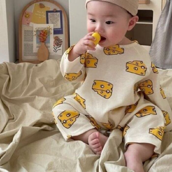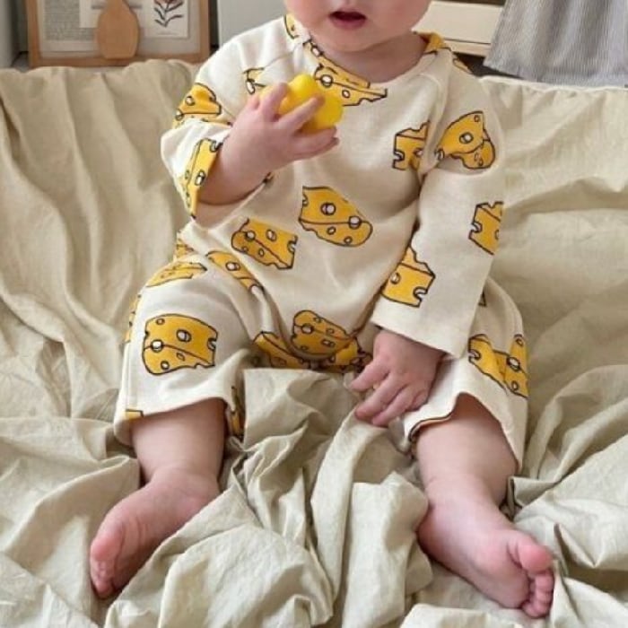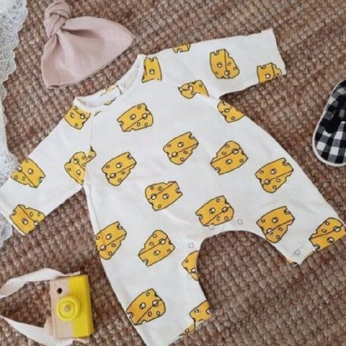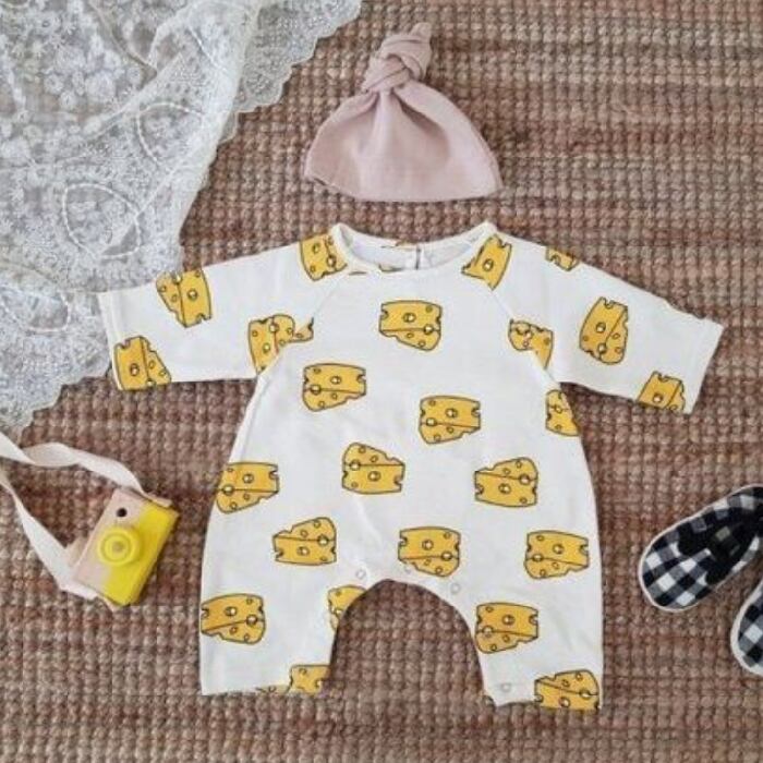 チーズ柄ロンパース+帽子付きセット⟡.·