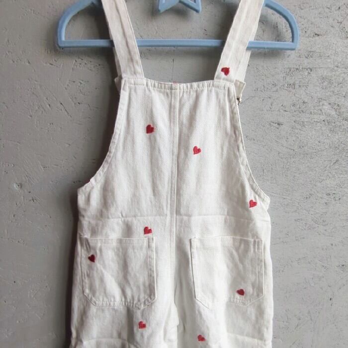 ハート柄のオーバーオール、調節可能です♡