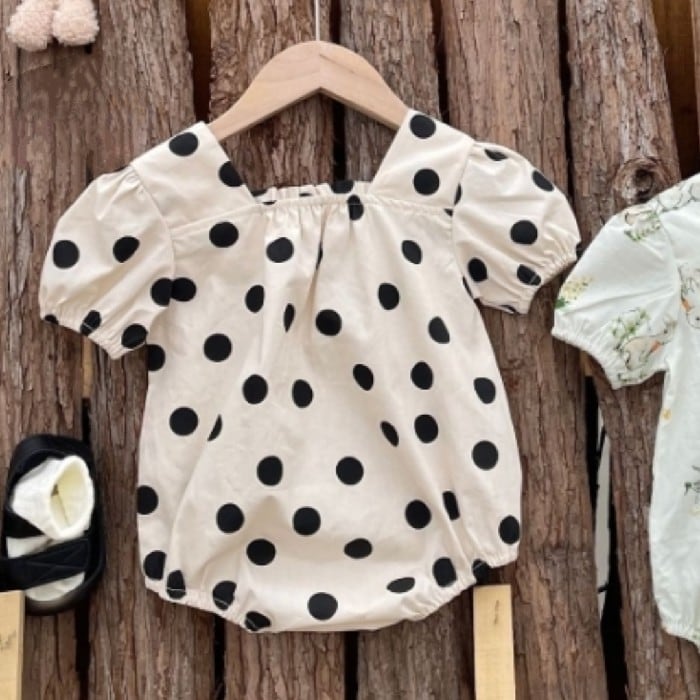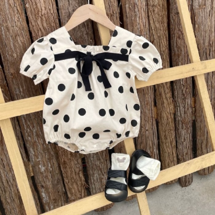 バックリボンがカワイイ薄手の半袖ロンパース♡