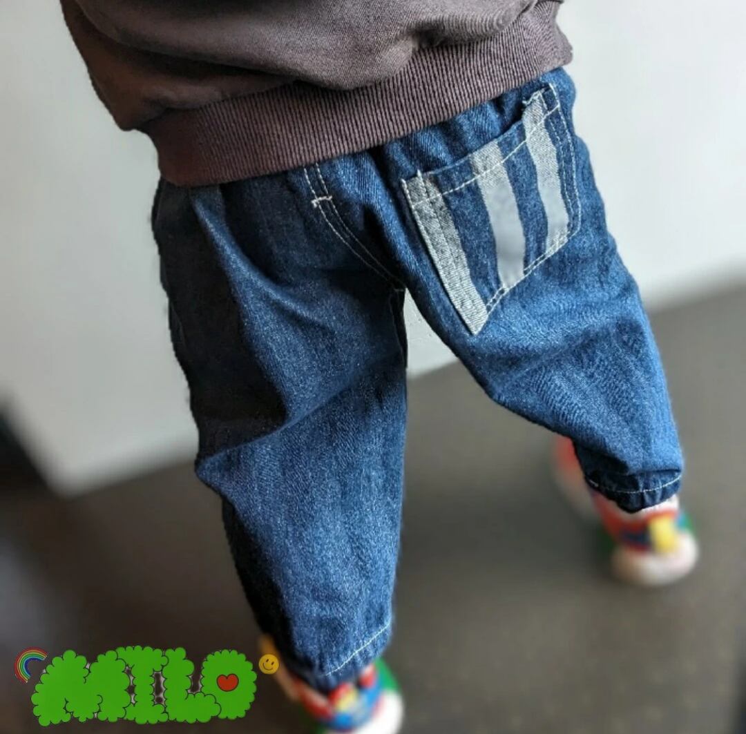 裾部分を曲げるとストライプ部分が見えるのも可愛いデニムです☺︎