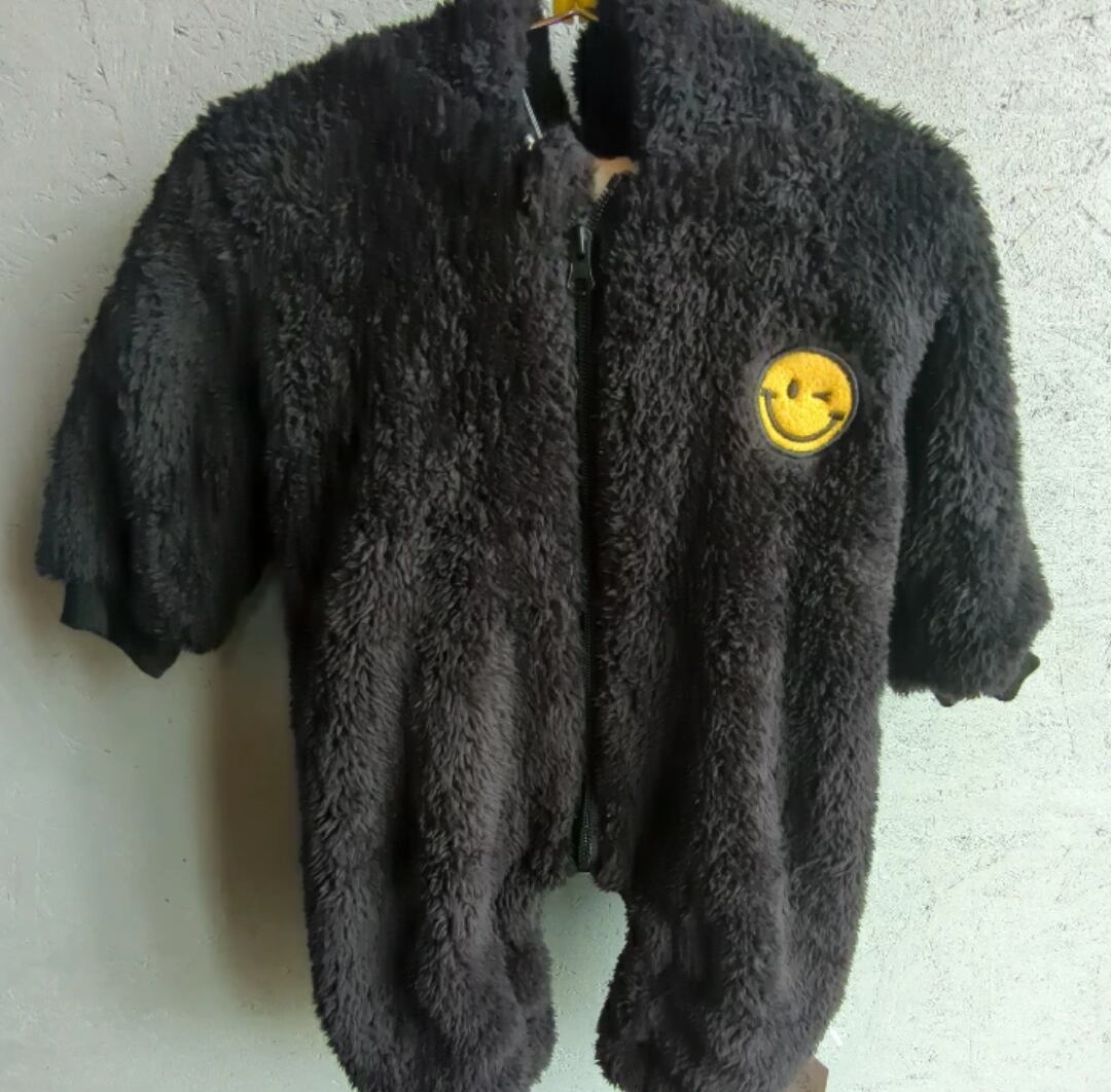 前開きチャックタイプのボアロンパース。