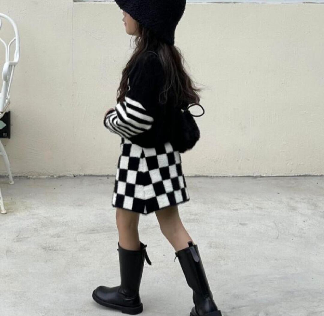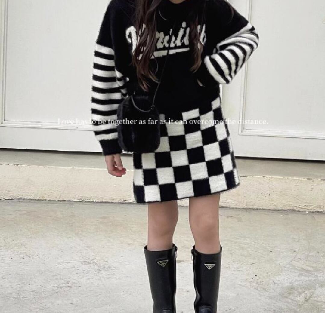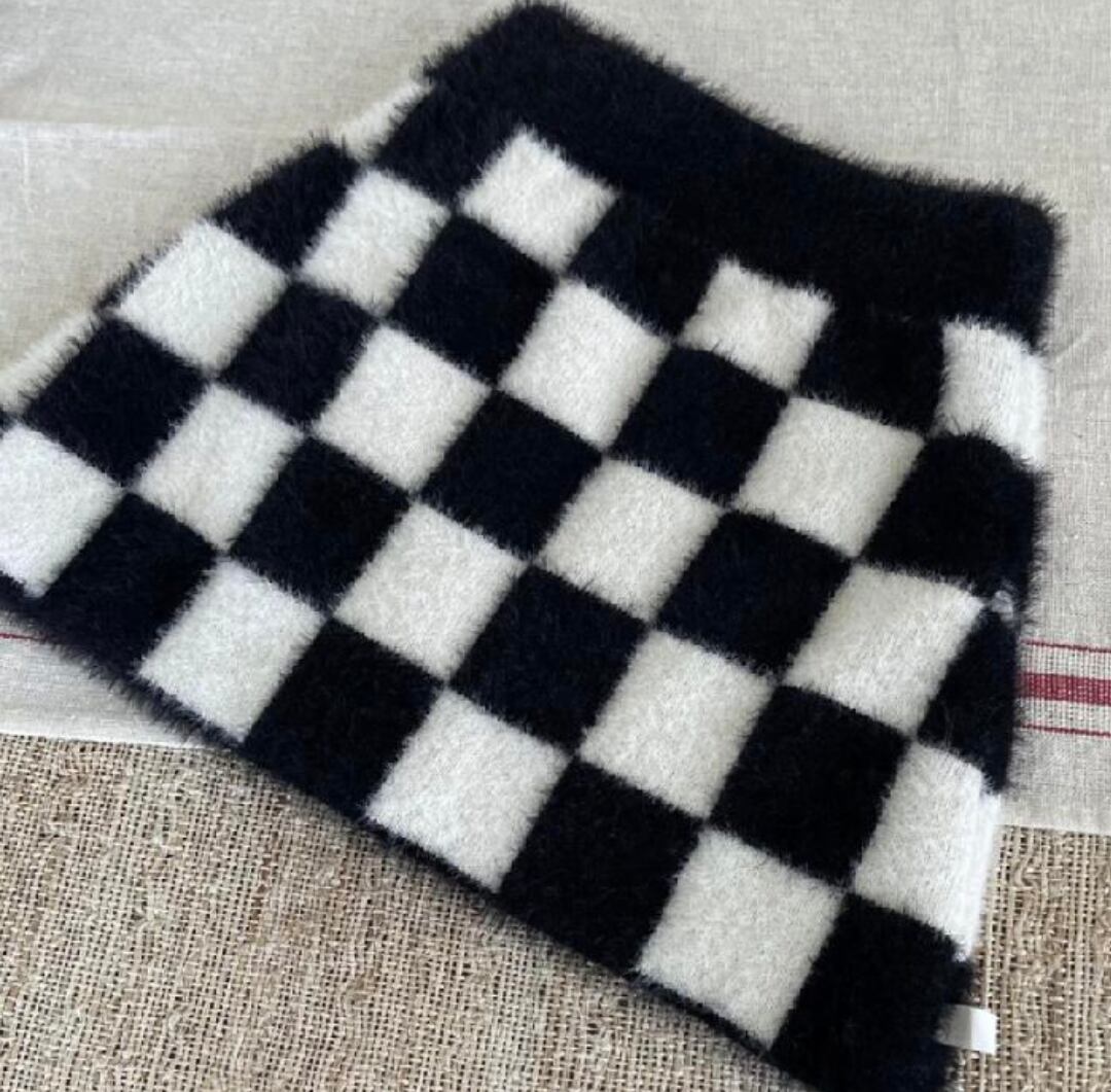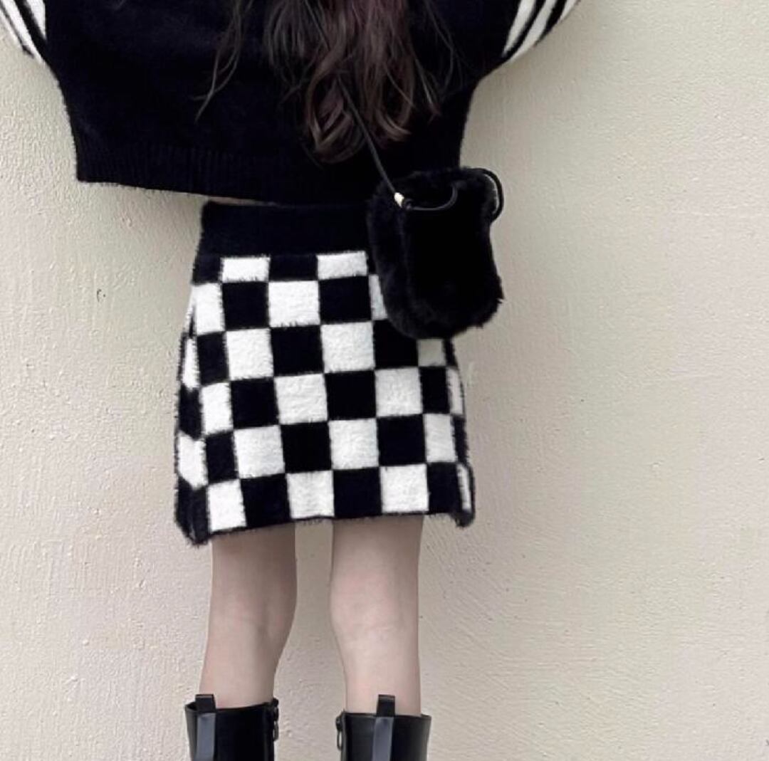 ꒰checkers shaggy knit skirt꒱